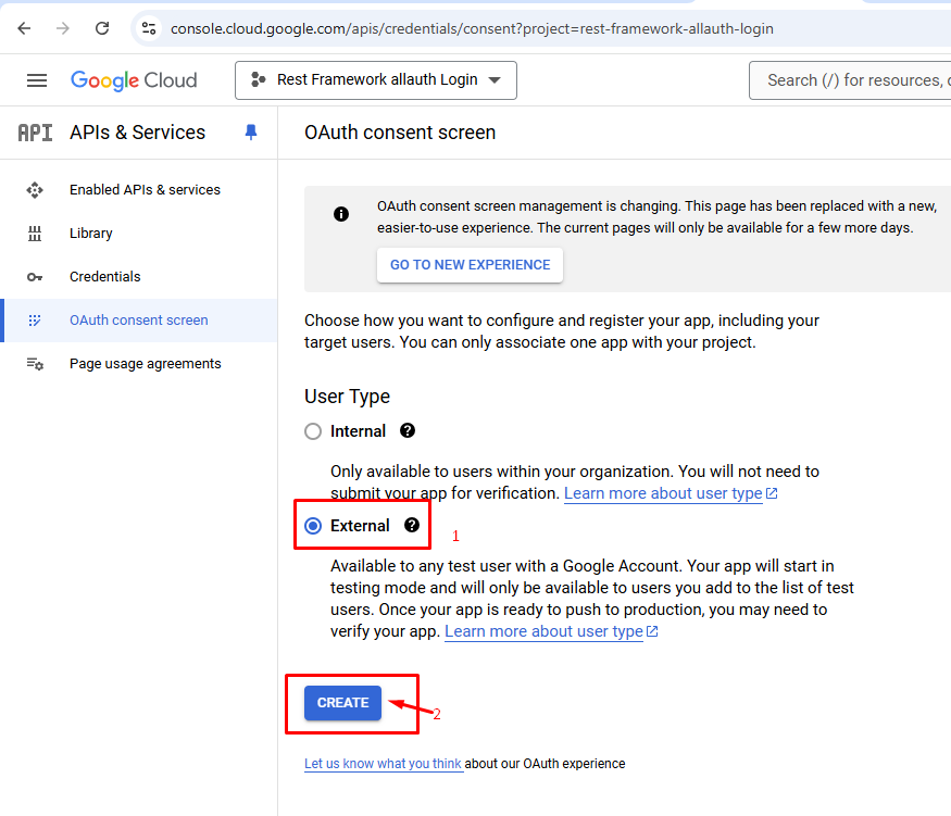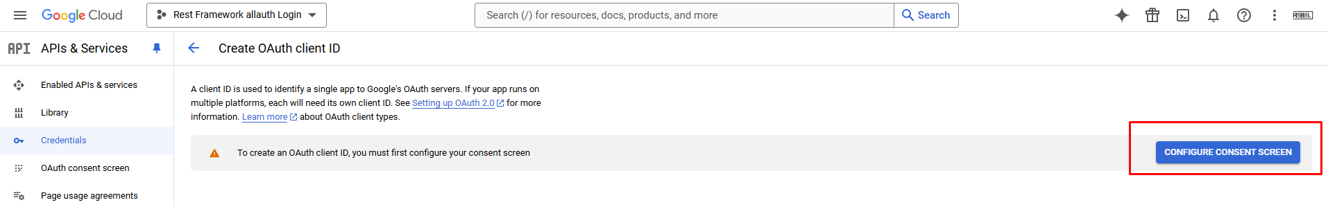 1. OAuth consent screen অপশনে যান।