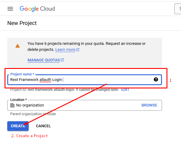 • একটি প্রজেক্ট নাম দিন এবং Create ক্লিক করুন।