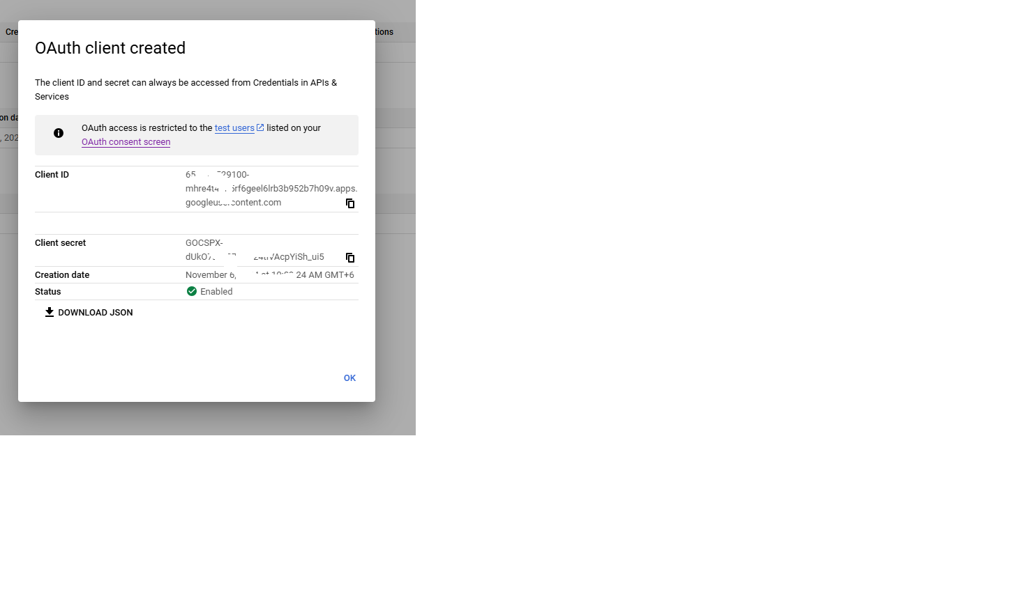 Secret key: আপনার JSON ফাইল থেকে client_secret এর মান এখানে বসান: