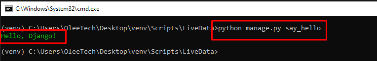 self.stdout.write(self.style.SUCCESS('Hello, Django!'))