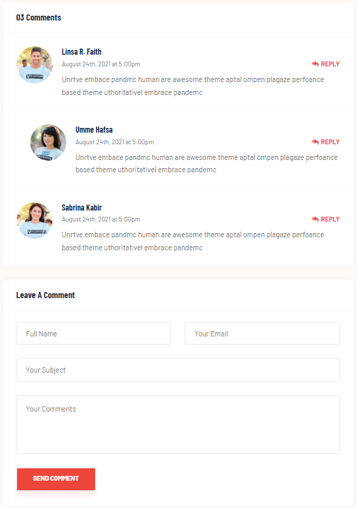 • widget-header: Displays the number of comments (e.g., “03 Comments”).